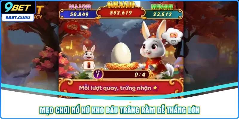 Một mẹo cực kỳ hữu ích khi chơi nổ hũ Kho báu trăng rằm là quan sát thời điểm “hũ gần nổ” – tức là khi tổng giá trị giải thưởng tích lũy đã đạt đến mức cao và chưa có người chơi nào trúng. Thông thường, hệ thống của 9bet sẽ hiển thị giá trị hũ theo thời gian thực, và khi con số này tăng nhanh, đó là dấu hiệu hũ sắp “nổ”.